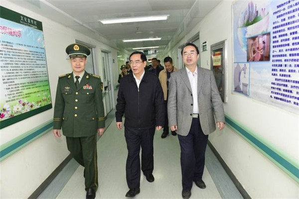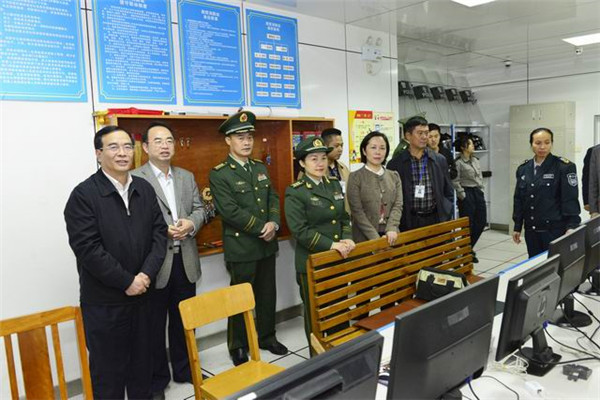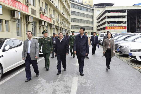 2016年11月10日下午,广西壮族自治区卫生计生委主任李国坚组长、广西消防总队副总队长韦明战率领自治区卫生计生机构安全生产平安医院创建及消防安全标准化建设考核验收检查组一行7人对一附院进行督查指导。Beat365中国唯一官方网站党委书记尤剑鹏,一附院院长黄贵华,党委书记李敏智,副院长周建国及一附院相关部门负责人陪同检查。