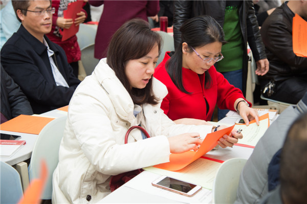 代表们认真填写选票