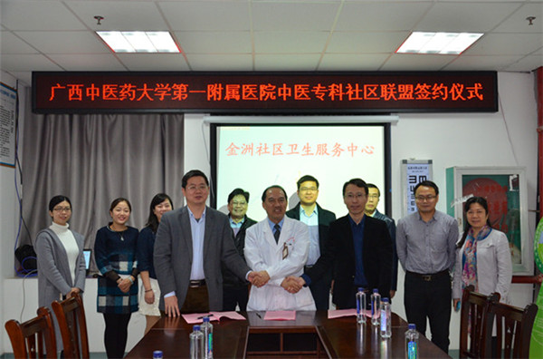 在签约仪式上,申睍副局长说:“中医一附院顺应医改政策、主动发起组建中医专科社区联盟、促进优质中医医疗资源下沉社区,必将有效提高社区中医药服务水平,这是为青秀区群众做的一件大好事,与青秀区卫生工作计划不谋而合。联盟组建之后,社区一方面应该好好地利用联盟这个平台、努力提高中医药服务技术水平,另一方面积极创造条件,利用三甲医院和专家的影响力,使中医中药服务进一步深入群众,扩大惠及面,为巩固青秀区作为国家级‘中医药强区’的地位作贡献。同时,也恳请中医一附院不吝赐教、加大帮扶力度。此外,青秀区卫计委也会进一步优化政策支持,提高中医药服务共建工作的成效。”
