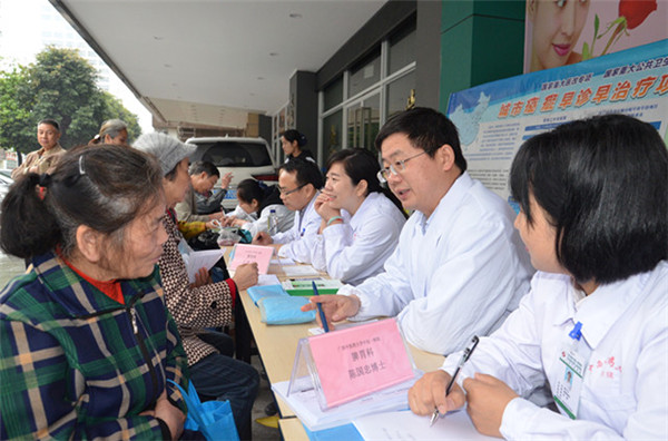 3月22日上午,一附院外八科(腺体外科)和七星社区卫生服务中心“中医专科联盟”签约揭牌仪式在金洲社区卫生服务中心举行。一附院医务部、门诊办、外联部等职能部门一起参加见证了签约揭牌仪式。随后,脾胃病科和治未病中心在举办了惠民义诊和健康宣教。陈国忠、孙云广、廉永红、王伟、劳祥婷等医师为100多名群众进行了义诊和咨询。同时,治未病科刘倩以《春季养生保健中医药锦囊》、脾胃病科王伟以《胃肠肿瘤早发现早防治必备常识》为题,为社区群众举行了专题科普讲座。40多名社区群众闻讯前来听讲座,踊跃向宣教讲师咨询保健知识、热烈讨论个体预防保健措施。
