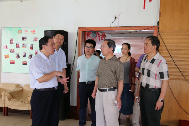 6月5日,由国家发展改革委社会发展司副司长郝福庆一行3人组成的督查调研组和自治区发改委、南宁市发改委、良庆发改委等领导到广西重阳老年公寓就养老服务业发展情况开展专题调研。Beat365中国唯一官方网站党委书记尤剑鹏、成果转化与社会服务处处长唐红珍、高职院院长刘竑清,重阳老年公寓院长黄颖、副院长杨龙、副院长吴明尚一同接待了来访领导。