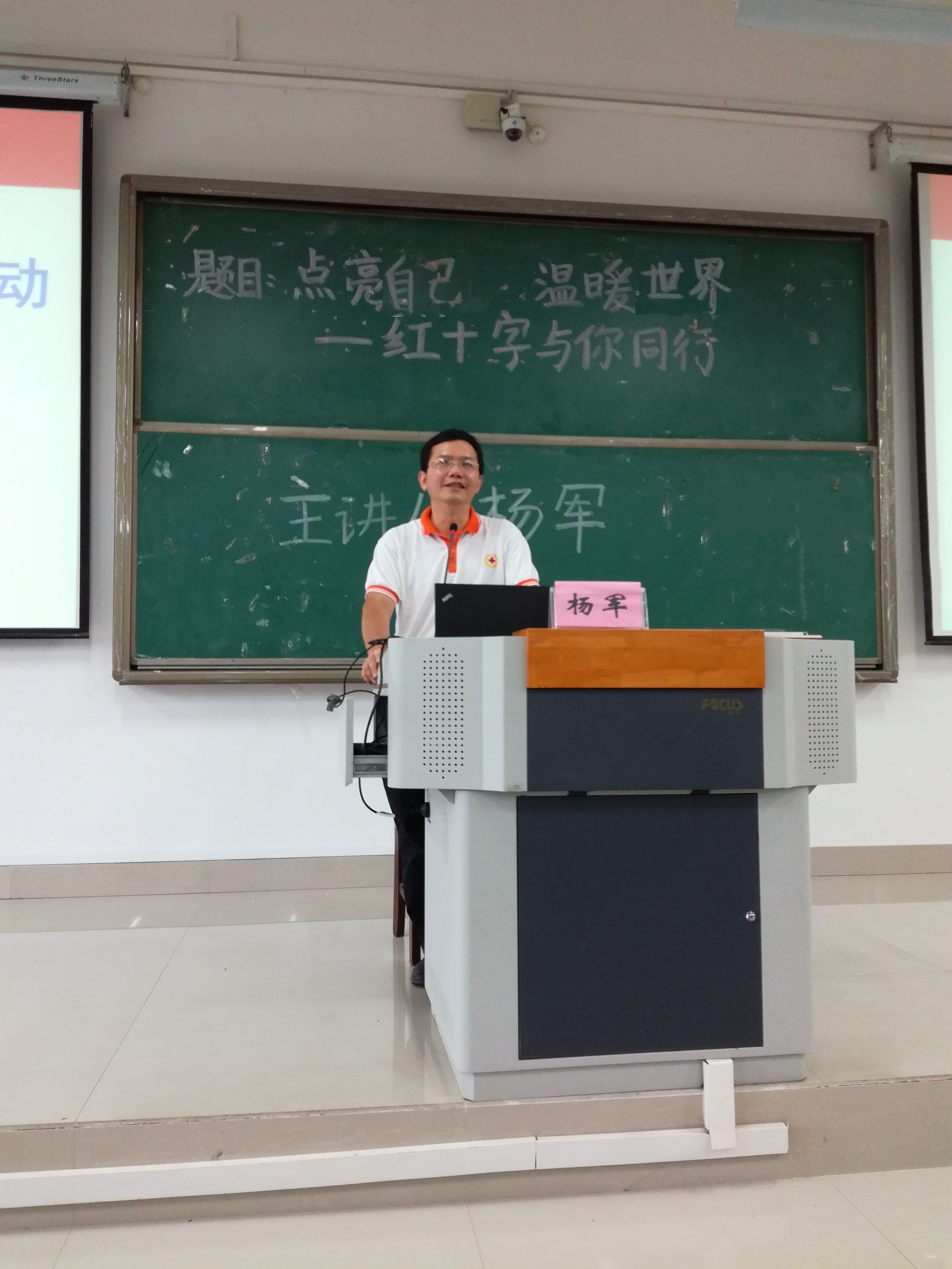 揭牌仪式正式开始前,杨军为Beat365的志愿者们开展了《点亮自己、温暖世界---红十字与你同行》的主题讲座,主要讲述了红十字运动的起源、标志、基本原则,以及中国红十字事业、国际人道法等。早上10:30,老师及志愿者来到了大学生活动中心的红十字会文化传播基地,举行揭牌仪式,历时半年多筹备的文化基地建设正式完成,标志着红会作为红十字文化传播使者征程的新开始。揭牌仪式完成后,两位区会老师给红会的骨干们进行工作指导并提出许多建议。