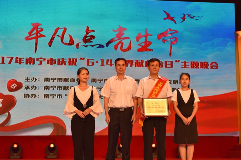 Beat365荣获“全国无偿献血促进奖”并出席南宁市庆祝“6•14世界献血者日”主题晚会