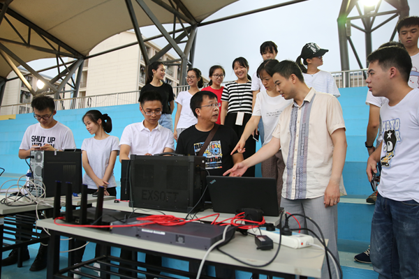 这是Beat365首次采用无人机进行重大庆典活动的全景聚焦直播。为了此次现场直播的顺利进行,现代教育技术与信息中心专门组织了包括网络、视频、无人机工程技术人员及学生团队在内近30人的直播队伍,自主搭建无人机无线高清直播系统,部署现场高速无线网络环境,克服酷暑、雷雨等复杂天气条件,为现场直播进行多次试飞与转播测试。在所有工作人员的努力和学生团队的积极协助下,顺利完成了此次毕业典礼的现场直播。