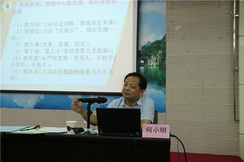 广西师范大学法学院政治与公共管理学院党委书记何小明作题为《如何做一名基层党组织党委书记》报告