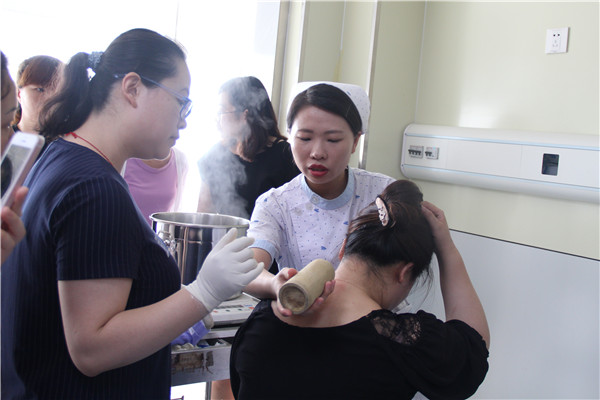 “全国中医护理骨干人才培训项目”是国家中医药管理局统一组织开展的培训项目。瑞康医院作为该项目的培训基地之一,为了突显医院的护理特色,在为期5天的课程设置上做了充分的准备,内容包括壮医药技术的相关知识、中医适宜技术的推广应用策略、中医护理方案的评价、胃脘痛综合干预措施等理论培训,同时还安排了药物竹罐、雷火灸、颈椎操的操作培训和临床科室观摩交流。培训班理论联系实践,针对性、实用性强,内容全面,得到了全体学员的认可和好评。
