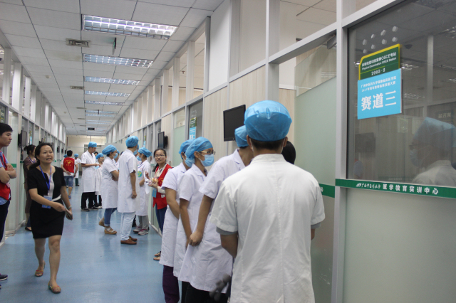 陈日兰宣读比赛规则及比赛流程。本次青年教师临床技能比赛由来自医院三个院区的内、外科等40个科室的48名参赛选手组成12支参赛队伍进行比赛。比赛分初赛和决赛,采用积分制,根据各站最终积分总分评定初赛和决赛名次,初赛分数计入决赛分数。初赛按照多站式考试(OSCE)分站考核,总体分内科基本技能、外科基本技能、中医基本技能等12站,各参赛队均要经过12个站的考核,每个站规定6分钟内完成考核操作内容。决赛分为三个赛道,主要考察参赛队伍的综合救治能力,规定20分钟内完成考核。