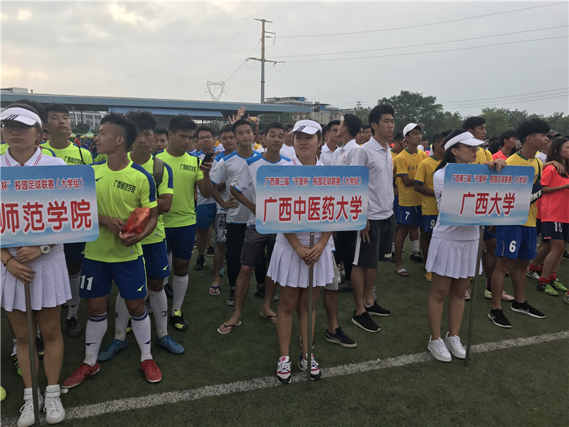 9月7日下午,由自治区教育厅、自治区体育局联合主办的广西第三届“千里杯”校园足球联赛(大学组)在桂林落下帷幕。8月30日上午联赛组委会主任、自治区高校工委书记、教育厅厅长莫诗浦,组委会副主任、教育厅副厅长孙国友,组委会副主任、广西师范大学党委书记邓军,组委会执行副主任、广西师范大学漓江学院董事长丁静,组委会执行副主任、广西师范大学副校长覃卫国,以及来自全区各高校、广西体育卫生艺术学会和桂林市雁山区的领导代表出席了开幕式,开幕式由组委会秘书长、自治区教育厅体卫艺处处长陈卫主持。