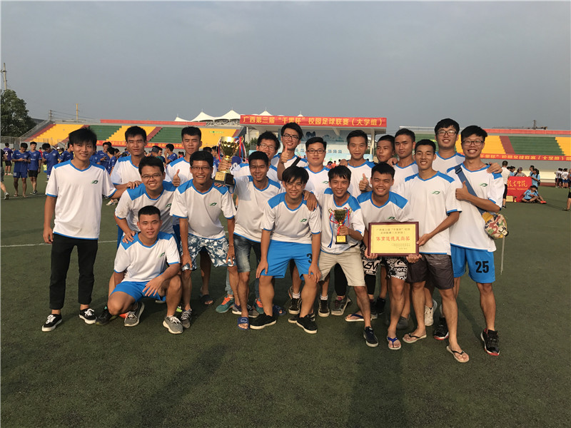 普通本科组(男子组)有18个代表队参加,Beat365男足被分在C组,首场比赛中Beat365男足1-0战胜小组头号种子、上届比赛第三名桂林理工大学,第二场又2-1逆转广西科技大学,小组赛最后一场3-2力克广西医科大学,以三战全胜小组第一强势晋级八强。四分之一决赛中经过激烈的对决,Beat365男足通过点球大战5-3淘汰梧州学院,挺进半决赛。在半决赛中,Beat365男足面对南宁学院,敢打敢拼,一度占据场上主动,展现出了良好的竞技状态和拼搏精神,无奈运气欠佳,被对手偷袭得手,最后以0-1惜败,最终获得第四名,创造Beat365男足在“千里杯”历史上最好成绩,并荣获“体育道德风尚奖”。