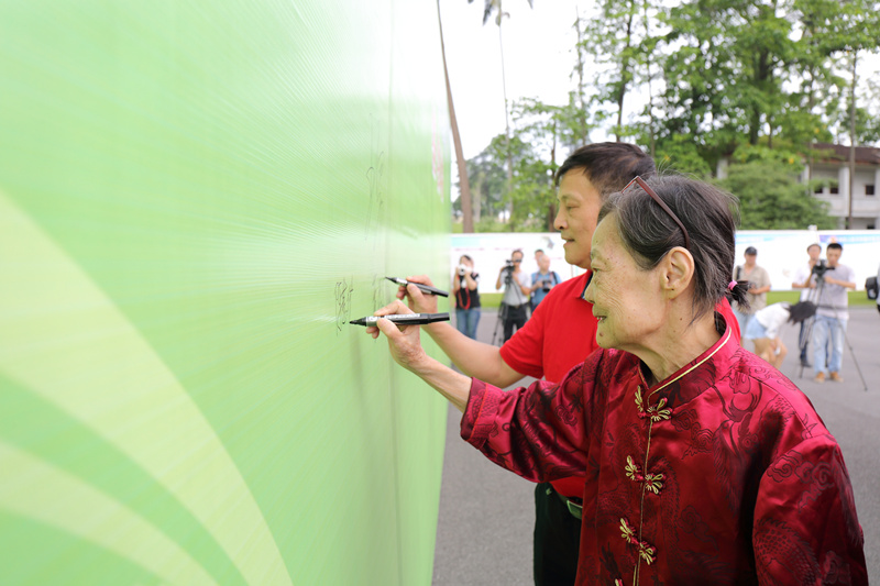 董塔健副书记、陈慧侬教授在“传播中医药健康文化、提升民众健康素养”的签名墙上签名