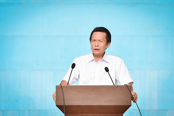 瞿胜雄表示,同学们在军训中吃苦耐劳、严于律己、顽强拼搏、表现出色。希望通过此次军训,同学们能普遍增强体质,磨练自己的意志,锻炼抗挫品质,培养团队协作精神。接着新生军训代表武宏伟同学也做了发言,他表示军训让他受益匪浅,他将在以后的学习中继续发扬军人精神,好学习,做一名合格的大学生。