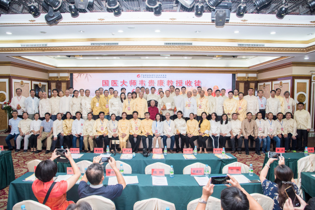 古之学者必有师,师者所以传道授业解惑。会上举行了简朴而庄重的拜师仪式,13名来自世界各地弟子向国医大师韦贵康拜师,并接受国医大师韦贵康教授回礼葫芦和书。韦贵康国医大师希望弟子们学富五车、悬壶济世。