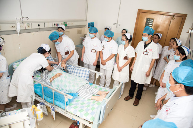 座谈会结束后,校内认证专家分两组进行了检查,庞宇舟一行三人到胃肠肛门外科进行临床教学的实习考察,查看了教学查房、教学病例讨论等。护理学院马秋平副院长及胡艳宁副院长到护理教研室查看教学相关资料。