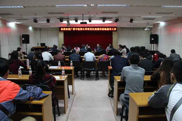 为了加强医院与学校的联系,促进医院与学校教育教学发展,做好医院全体研究生意识形态工作和安全稳定工作,同时进一步加强研究生思想政治教育与规培管理,服务医学生成长成才,提升人才培养质量,10月17日下午,研究生管理工作调研会议在瑞康医院B座23楼举行。学校副校长兼研究生学院院长戴铭,研究生学院党委书记黄贵华,党委副书记李朝辉,瑞康医院院长唐友明,党委副书记、副院长陈日兰,副院长韦思尊,党委副书记、纪委书记黄建民,副院长陈锋,瑞康医院各教研室主任,教务学生部全体人员,研究生代表到场参加会议,会议由唐友明院长主持。
