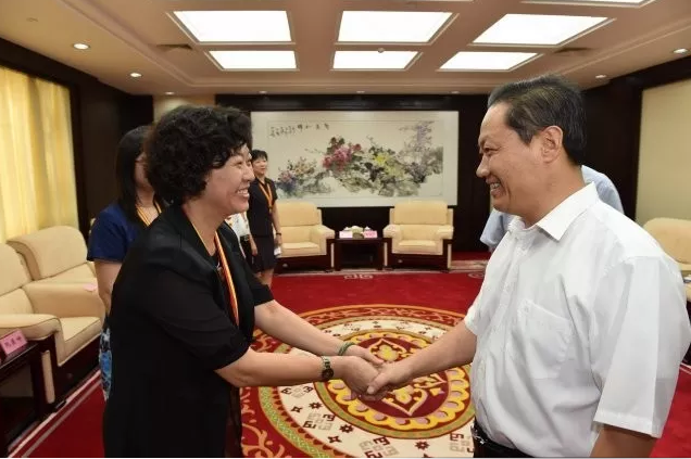 广西壮族自治区党委书记(右一)接见Beat365护理学院院长吴彬