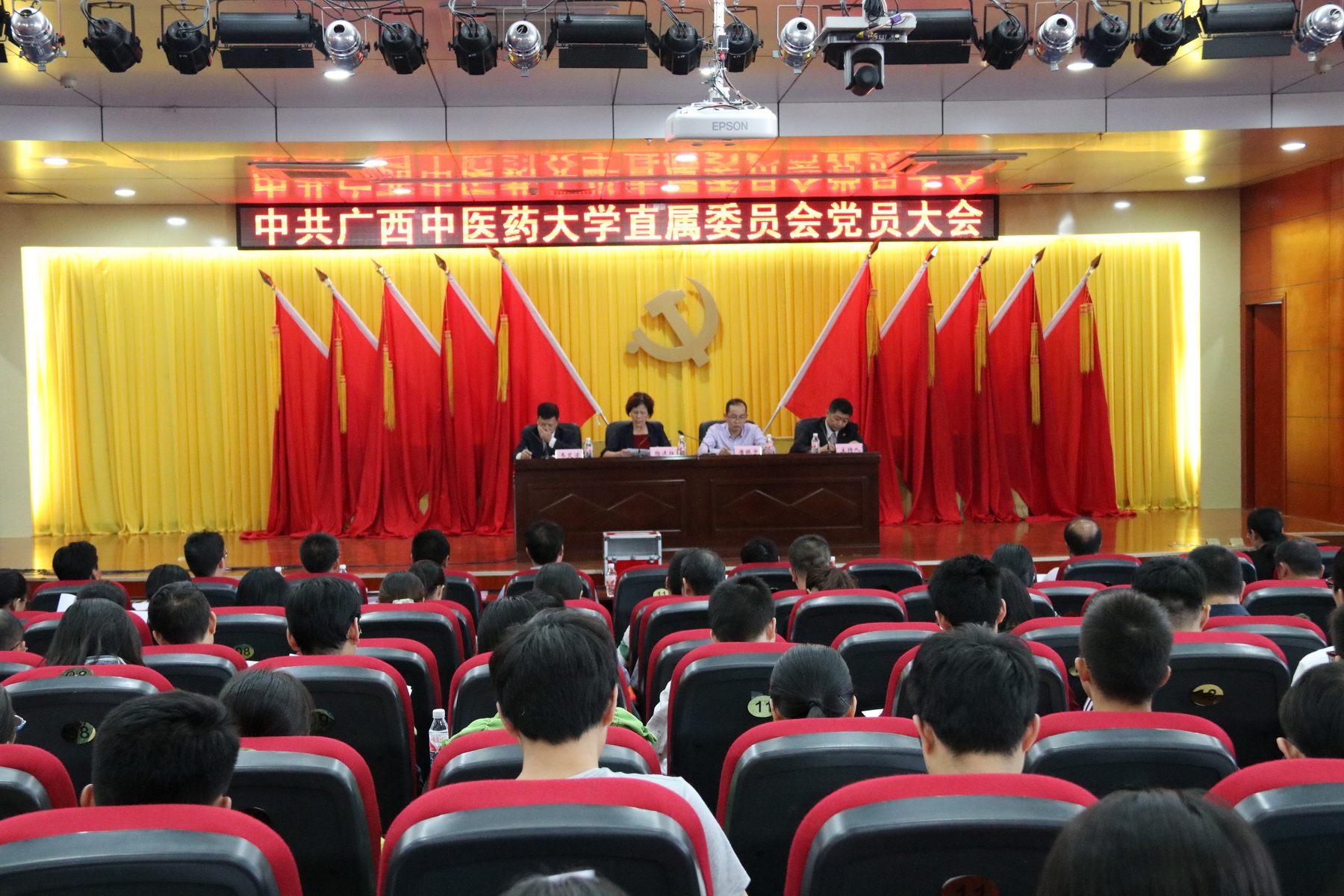 10月31日下午,在庄严的国歌声中,共89名党员同志参加的中共Beat365中国唯一官方网站直属委员会党员大会在仙葫校区图书馆第二会议室胜利召开。学校党委副书记、纪委书记杨连招,学校党委组织部部长唐振宇出席会议。大会由覃振林主持。