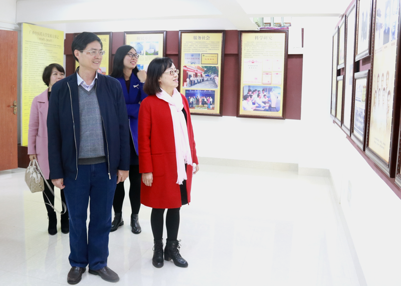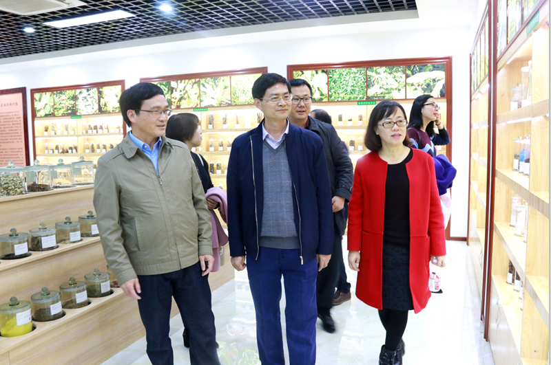 在何并文等的陪同下,王宇清一行参观了晨钟暮鼓楼、药王谷、药师山、仙葫药圃、中医药文化长廊、竹林、五味林、中药炮制实训中心、中医药辨识馆、腊叶标本馆、壮医药教学成果展、瑶医药文化展等。