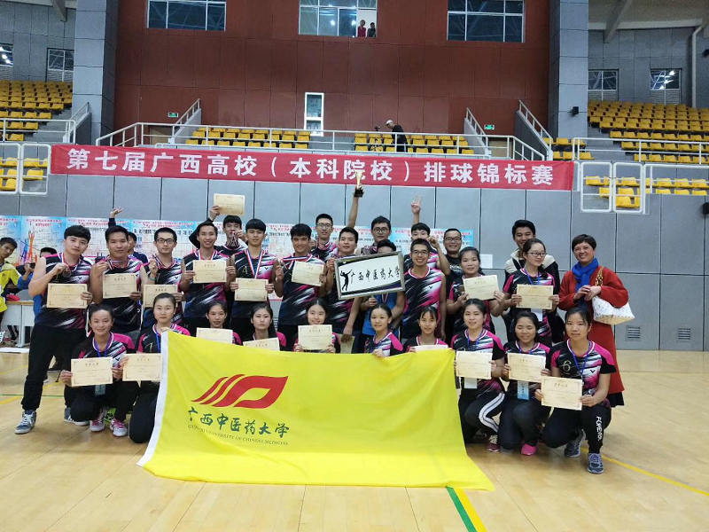 Beat365男女排球队以石荣群老师领队、以林娟、丘大为和韦金亮为教练组的带领下也参加了本次比赛。Beat365男女排球队在比赛过程中充分发扬了敢打敢拼、永不服输的精神,女队在小组赛中一路过关斩将,分别战胜了广西医科大学、广西大学和广西科技大学以小组第一进入八强,在淘汰赛中遗憾告负桂林航天学院代表队,但在5——8名决赛中力克广西民族大学,并在5——6名决赛中战胜广西科技大学代表队,荣获第五名的好成绩。 男队在小组赛先后战胜广西外国语学院、南宁学院和桂林理工大学南宁分校,也以全胜战绩晋级八强,并在淘汰赛中力克广西大学行健文理学院晋级四强赛,在半决赛中以微弱比分负于桂林电子科技大学队无缘决赛,最后在3——4名决赛中力克广西财经学院代表队,荣获第三名的好成绩,这是Beat365排球队建队以来历史最好成绩。