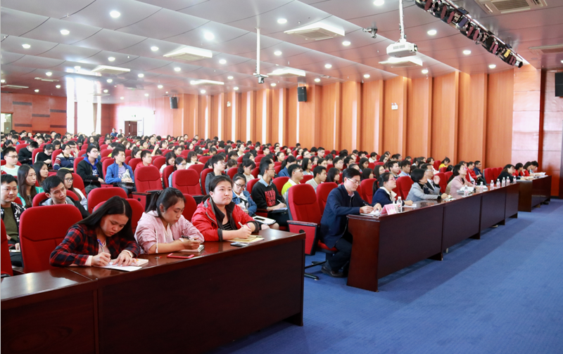 尤剑鹏以《与新时代共奋进》为题,从党的十九大概况,习近平新时代中国特色社会主义思想的丰富内涵,过去五年的历史性成就,我国社会主要矛盾变化的深远影响,“新时代”以及“两个一百年”奋斗目标的战略部署等内容进行了详细解读。一个多小时的党课,尤剑鹏深入浅出,娓娓道来,扎实的历史、理论功底博得了在场学生们的热烈掌声和好评。