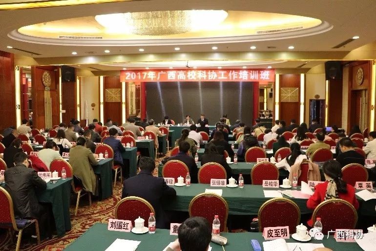 2017 年11月30日,由自治区科协、自治区教育厅共同主办的2017年广西高校科协工作培训班在南宁开班。自治区科协主席赵艳林出席培训班并作讲话,自治区科协党组书记、副主席纳翔在培训班上传达了中国科协全国高校科协工作推进会精神,并对做好高校科协下一步工作作了指导。自治区科协副主席梁春花主持开班仪式。自治区23所本科院校、10所专科院校高校科协的分管领导、秘书长、工作人员和未成立高校科协组织的28所高校代表共近100人参加培训班。Beat365冷静副校长、科技处肖健处长参加了本次培训会。