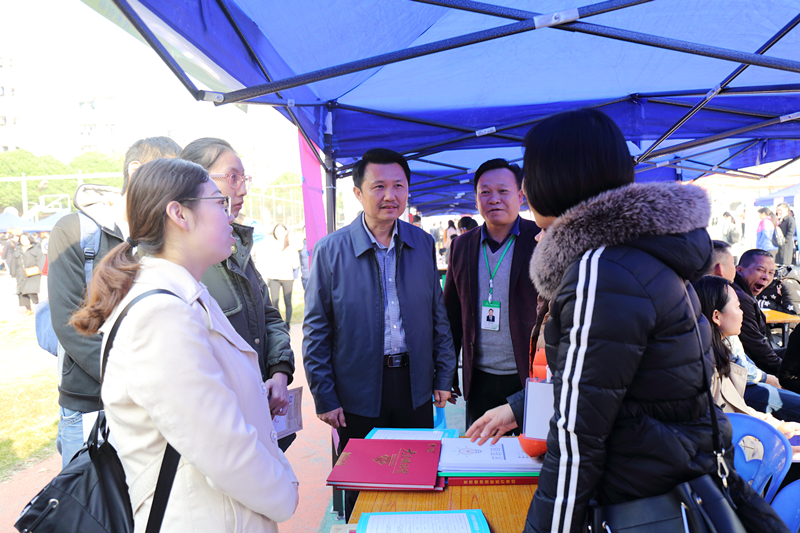 学校党委副书记庞宇舟,副校长吴琪俊、戴铭,总会计师何刚亮等多位学校领导和学校党委办公室、校长办公室、宣传部、教务处、学工处、团委、武保部、后勤处等部门领导亲临会场指导工作。各学院党政一把手,分管就业工作的领导,毕业班辅导员也纷纷到场,向用人单位推荐毕业生。