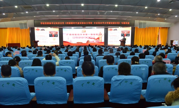 1月31日下午,学校党委副书记何并文教授应邀到一附院作意识形态专题讲座。一附院领导桂雄斌、钟远鸣、周广林、卢健棋、毛德文、黄仲海,全体中层干部、党务干部、党务骨干和意识形态工作相关部门的工作人员共450余人聆听了讲座。讲座由一附院党委副书记、副院长钟远鸣主持。