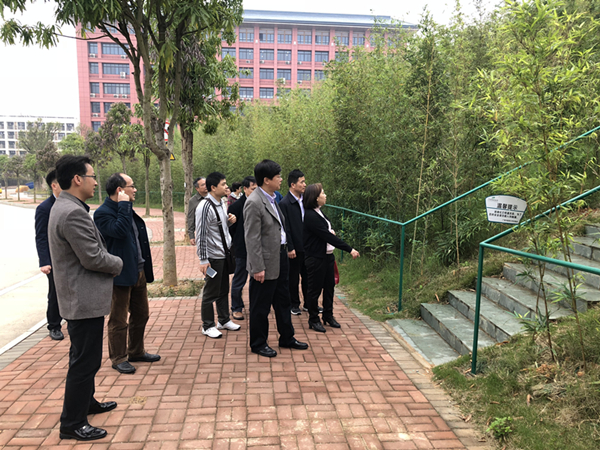 韦春灵一行参观了晨钟暮鼓楼校门、医圣广场、药王谷、东坡竹林、桃李园、菩提林等校园景观。