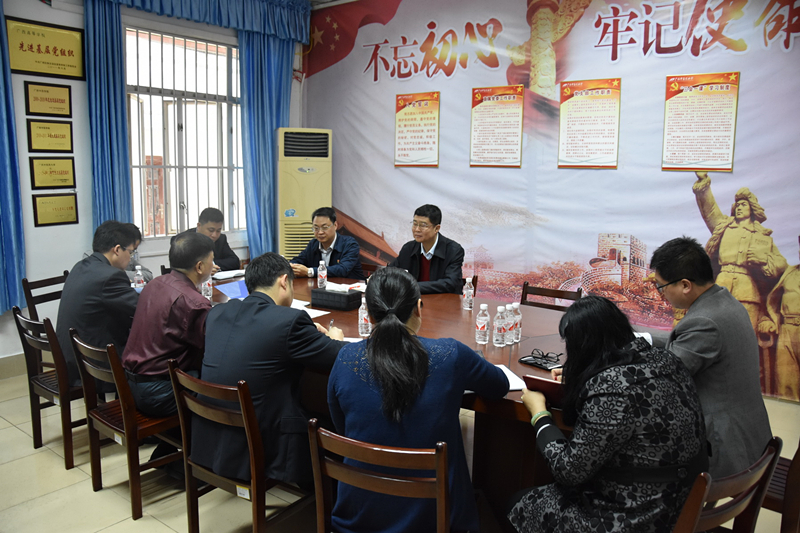 尤剑鹏一行实地考察了成教院的办公场所,详细了解办公情况,并就关心的问题与成教院职工亲切交谈。随后与成教院领导班子和全体职工进行了座谈。韦艾凌就直属党委、成人教育学院的工作、现状、取得的成绩以及存在问题进行了汇报。黄瑞诚就成教院近年开展的教学检查评估、教学管理常态化检查、全区成高统考等系列工作进行了补充汇报。覃振林也就直属党委的相关工作进行了汇报。