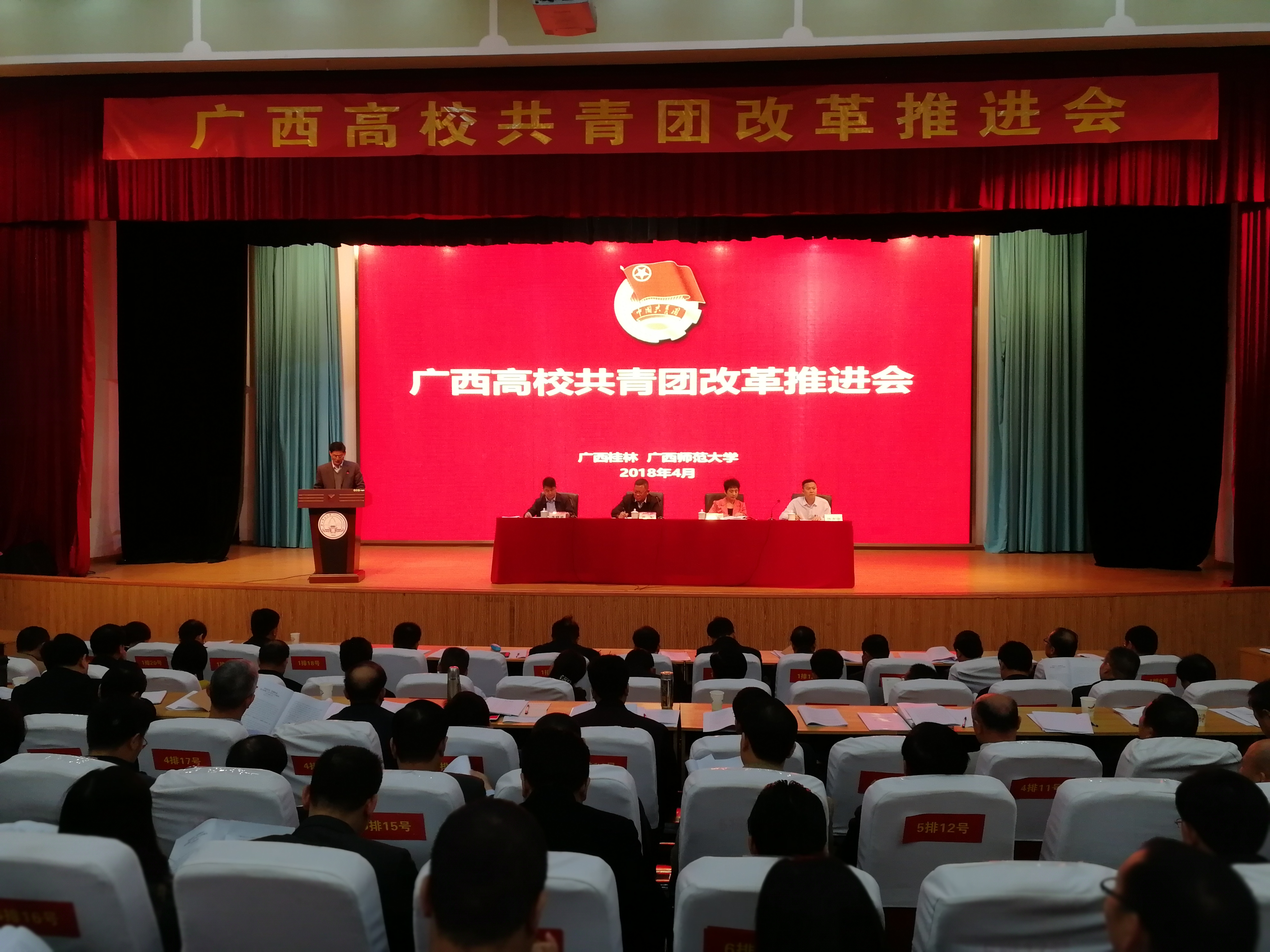 4月9日上午,全区高校共青团改革推进会在广西师范大学举行,自治区高校工委副书记覃萍、共青团广西区委副书记李晓勇参加会议并讲话,全区76所高校分管共青团工作的校领导、团委书记参加会议。Beat365党委副书记何并文代表学校做改革典型经验交流发言。