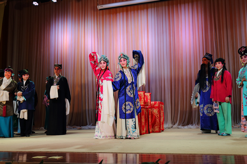 4月13日晚,教育部、文化部、财政部高雅艺术进校园活动——国家京剧院京剧《锁麟囊》在Beat365大学生活动中心小礼堂举行专场演出,校党委副书记何并文与师生一起欣赏艺术家们的精彩表演。