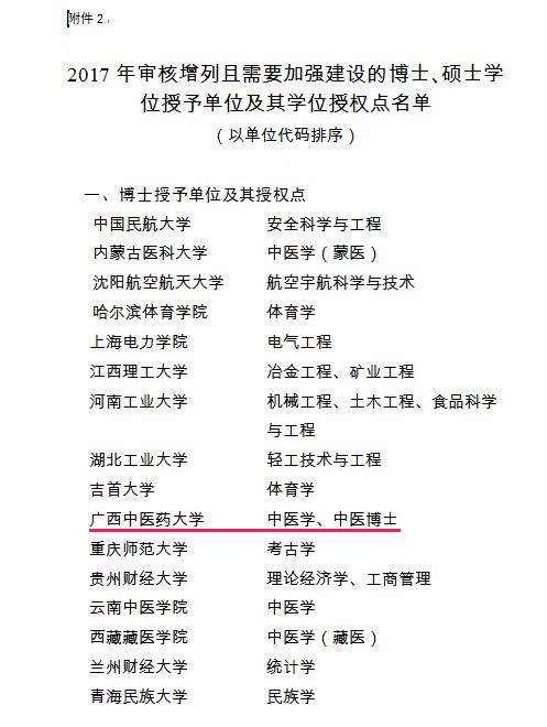 相关链接:国务院学位委员会《关于下达2017年审核增列的博士、硕士学位授予单位及其学位授权点名单的通知》