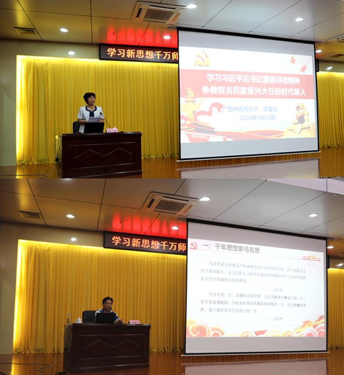 陈雪斌以《学习习近平总书记重要讲话精神争做担当民族复兴大任的时代新人》为题,为大家上了一堂精彩生动的思政课。陈雪斌深入阐述了习近平总书记在北京大学讲话的精神内涵并结合杨善洲、黄大年、广西入围2018“全国向上向善好青年”的优秀青年以及Beat365优秀校友的案例,鼓励师生们做新时代合格的教育者、社会主义建设者,在实现中国梦的生动实践中放飞青春梦想,书写人生华章。