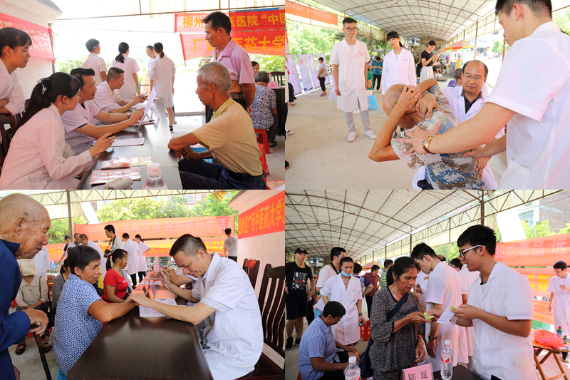 本次大学生社会实践活动以“青春践行十九大,接力奋斗新时代”主题,由学校团委委托骨伤学院组织开展,活动得到了学校第一附属医院、附属瑞康医院、附属国际壮医医院、第三附属医院(柳州市中医医院)、制药厂等单位的大力支持。在融安县潭头乡,社会实践活动队与第三附属医院、潭头乡卫生院的医生一起开展了爱心义诊活动。在庞宇舟、周红海、潘汉升等老师的带领下,同学们发挥骨伤专业优势热情主动地为潭头乡百姓诊疗,用在学校学到的手法、小针刀、针灸、艾灸等治疗知识为前来应诊的群众解除病痛,提出治疗建议,并免费发放药品,受到当地群众的欢迎和好评。庞宇舟一行还来到潭头乡卫生院,指导卫生院的建设,并就扶持卫生院正骨推拿科的建设达成了合作意向。