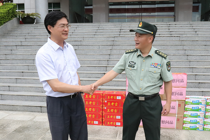 在中国人民解放军建军91周年到来之际,7月20日,学校党委副书记何并文率领校党委办公室、党委宣传部、武保部、附属瑞康医院等单位、部门代表组成的慰问团,前往Beat365军民共建单位凭祥市某部队进行慰问。