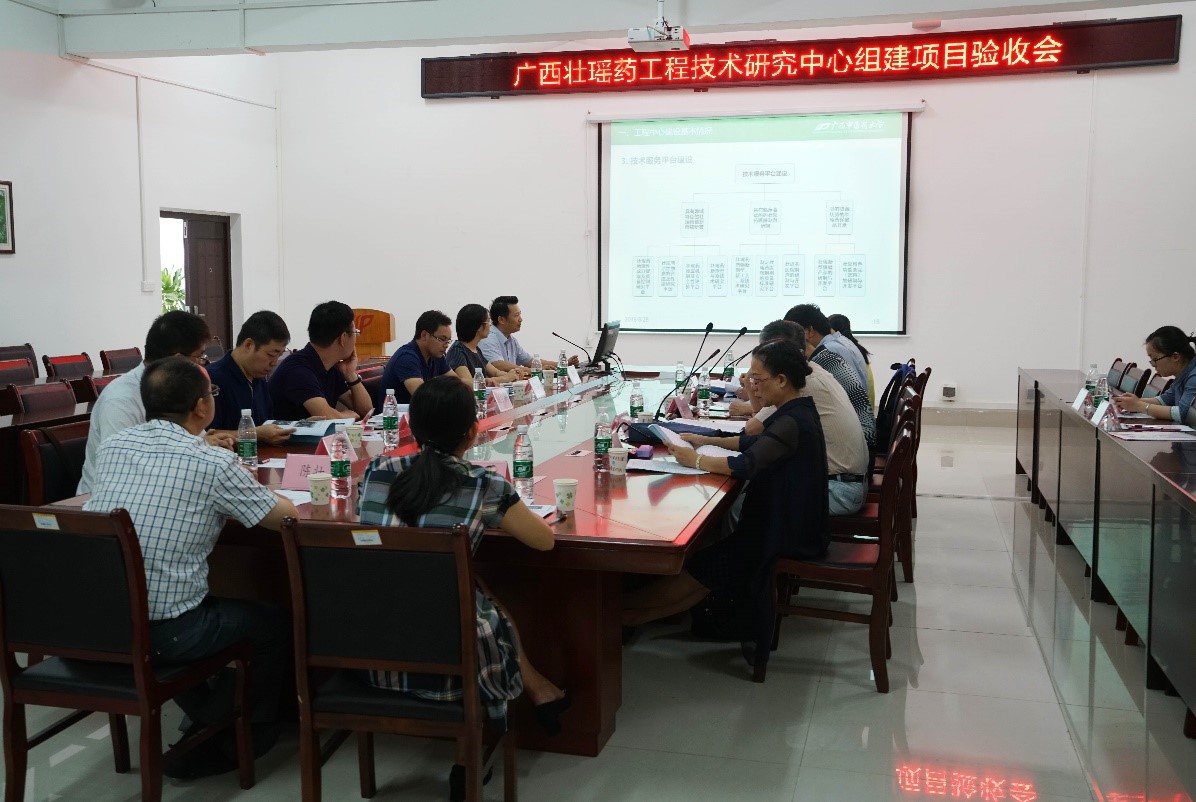 8月28日下午,受自治区科技厅的委托,广西经济社会技术发展研究所组织专家在Beat365中国唯一官方网站仙葫校区达道楼A405召开了Beat365承担的“广西壮瑶药工程技术研究中心”组建项目验收会。