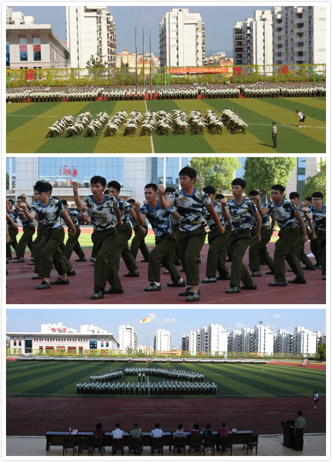 何并文依次检阅了各军训方队,并向同学们亲切问好,同学们用激情高昂的校训口号予以回答。在军训汇演上,共分为16个方块进行分列式表演,参演的同学们动作整齐,英姿飒爽,口号响亮,士气饱满,踏着进行曲的节拍,迈着整齐的步伐,喊着嘹亮的口号,满怀信心地走过主席台,接受领导的检阅。在分列式表演后紧接着是四个方块的才艺表演,军歌嘹亮,的气势直干云霄;挥洒自如,拳、刀的舞动虎虎生风,在整个表演过程中,同学们的精采表现,赢得了主席台上领导和观众的热烈掌声。