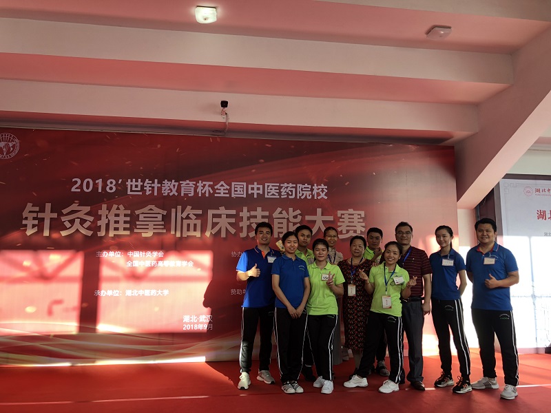 9月19日-20日,由中国针灸学会、全国中医药高等教育学会联合主办,湖北中医药大学承办的2018全国中医药院校针灸推拿临床技能大赛在湖北武汉举行。来自全国各地及香港地区各中医药院校、医科大学及综合大学中医药学院组成的35支代表队的288名选手参加了此次大赛。