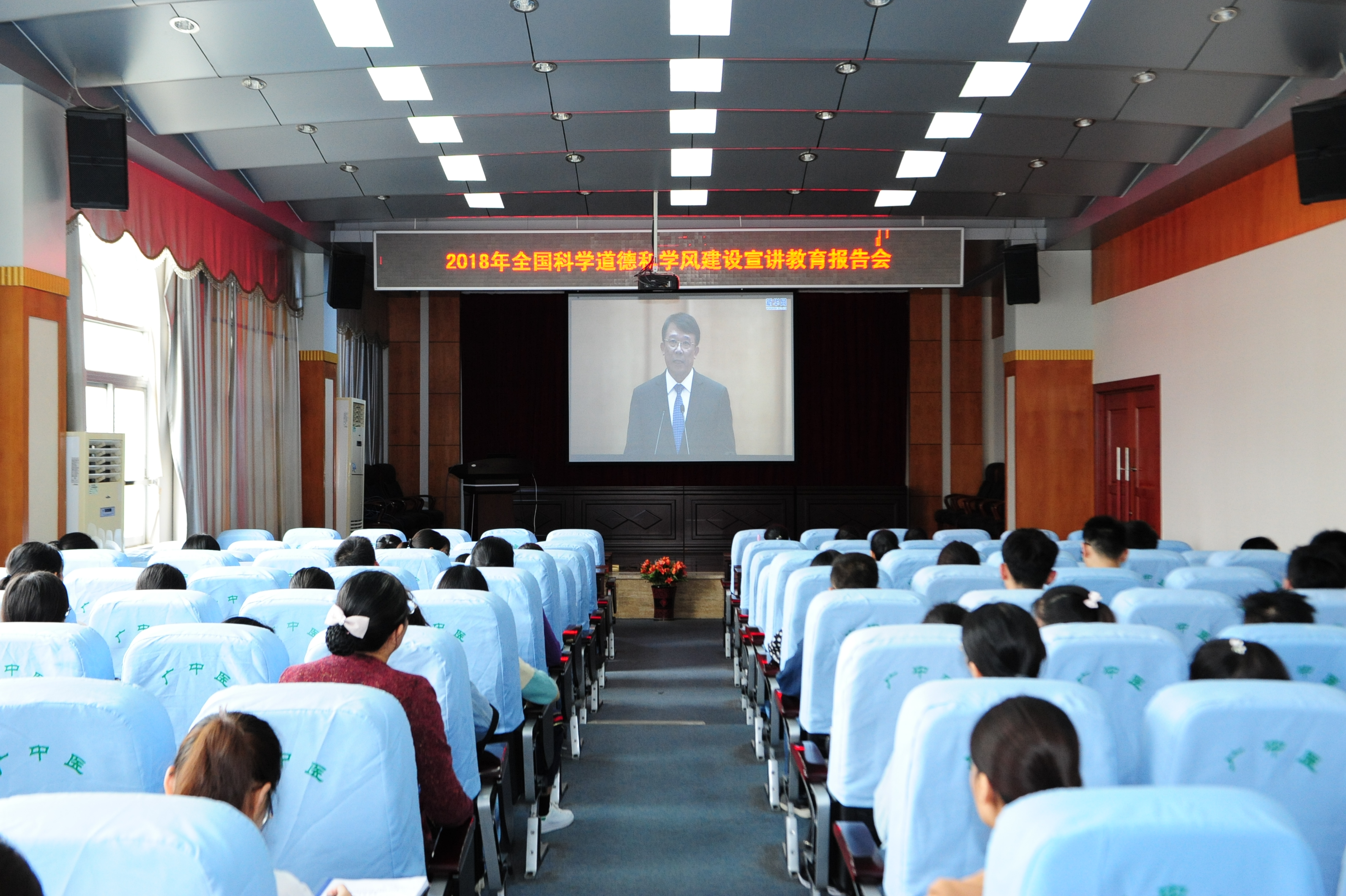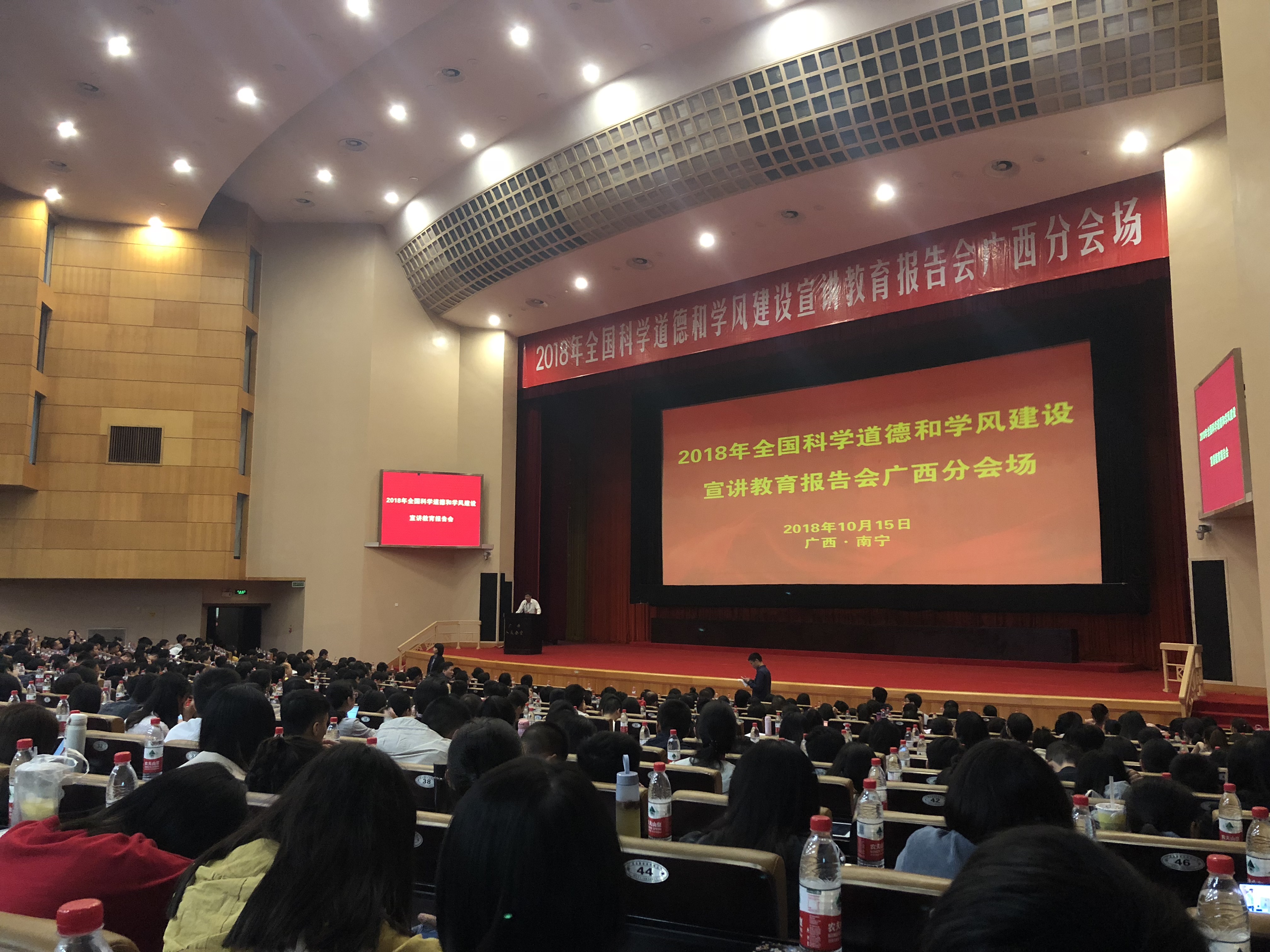 10月15日,2018年全国科学道德和学风建设宣讲教育报告会于北京人民大会堂举行。根据全国科学道德和学风建设宣讲教育领导小组办公室《关于组织收看2018年全国科学道德和学风建设宣讲教育报告会的通知》要求,Beat365科技处联合学工处、研究生学院组织200名师生代表赴广西人民大会堂同步直播分会场,同时各二级学院、附属医院自行组织了近1000名师生通过网络视频同步收看了报告会。
