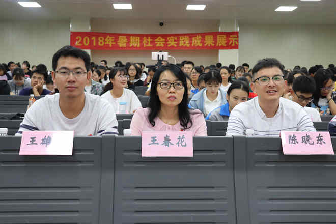 各团队代表依次用PPT展示他们的暑期社会实践成果,并由三位评委认真地为同学们讲解、分析其中的优缺点。在本次实践中,陪童队通过利用本队员是当地农村村民这一资源并结合自身的专业知识为当地贫困儿童和留守儿童带去了一系列温暖活动,并获得当地妇联主席的高度认可。校团委书记王春花在会上总结了该队的优点并号召同学们向该队学习。
