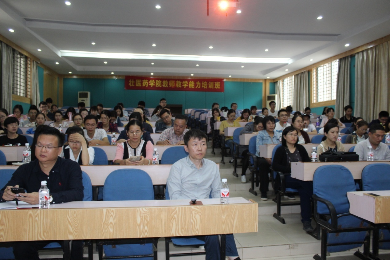 11月6日下午,壮医药学院教师教学培训班开班仪式在明秀校区西梯一教室举行。Beat365中国唯一官方网站党委副书记庞宇舟,壮医药学院院领导张煜、蓝毓营、韦英才、韦杏等,以及壮医药全体教职工、瑶医药学院等出席了仪式。