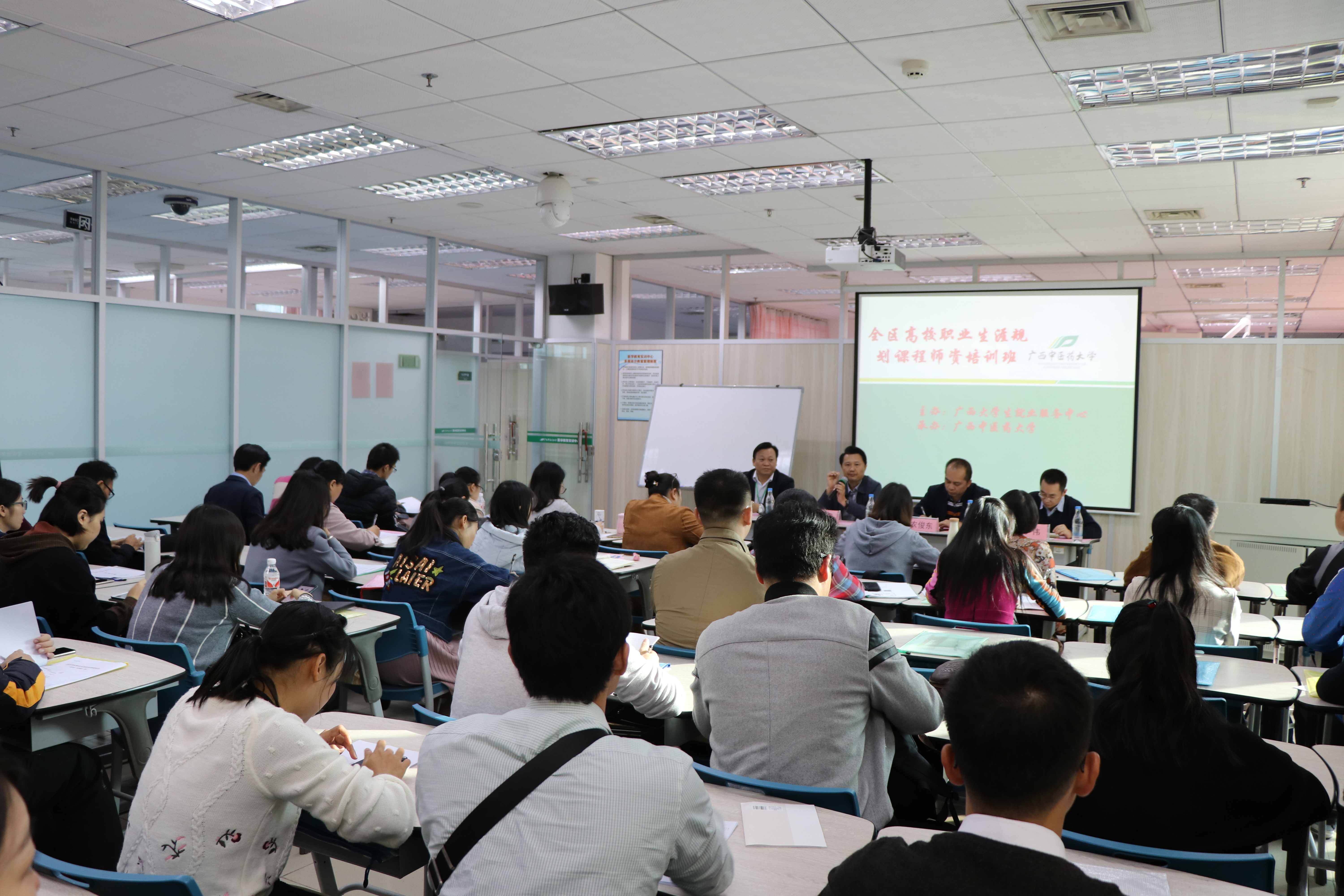 11月26日-27日,全区高校职业生涯规划课程师资培训(初级)班在Beat365成功举办。广西大学、右江民族医学院等8所高校52人参加,其中Beat365教师25人。广西大学生就业服务中心农俊东主任、Beat365党委庞宇舟副书记、招生与就业处肖华业处长出席本次培训班开办仪式。