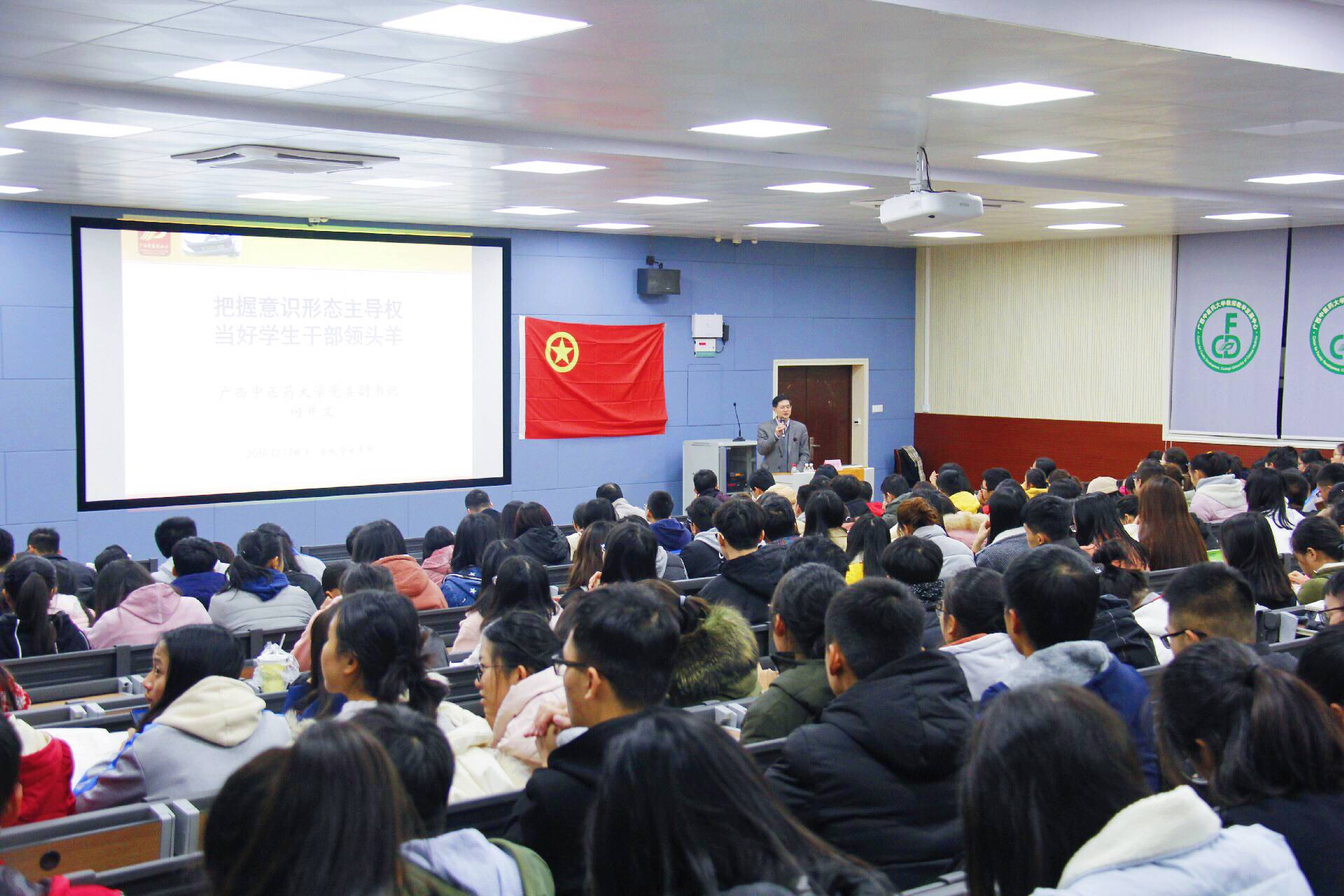 何并文以“把握意识形态主导权,当好学生干部领头羊”为题,从“高校培养什么人、怎样培养人、为谁培养人”“高校意识形态为何如此重要”“高校意识形态面临的问题与严峻挑战”“把握意识形态主导权,当好学生干部领头羊”等方面对做好高校意识形态工作、当好学生干部进行了精彩讲座。何并文指出,意识形态对国家和个人都有极大的影响,高校应注重加强意识形态的引领和教育。何并文认为,学生干部要弘扬正能量,当好领头羊,必须做到:口中有理——加强学习宣传,提高意识形态的理解力;网中有宝——用好传媒工具,增强意识形态的把控力;行中有力——注重言谈举止,提升核心价值的感染力。