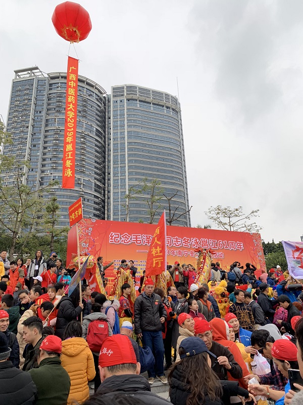 一年一度的南宁冬泳邕江活动起源于1958年1月7日的“南宁会议”期间,时年65岁的毛泽东顶着严寒在邕江中畅游了30多分钟。自那时起冬泳成了南宁人庆祝新年的传统活动,也是追随伟人脚步的纪念方式。