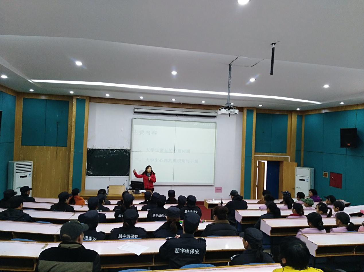 为健全Beat365心理危机预防和快速反应机制,推进Beat365“心理育人”工作,1月11日和15日下午,学工处心理健康教育与咨询中心在明秀校区西梯一和仙葫校区1-102教室分别对明秀校区和仙葫校区100多名宿舍管理员、安保员和保洁员开展心理健康知识专题讲座。讲座由心理健康教育与咨询中心谢春艳老师主讲。
