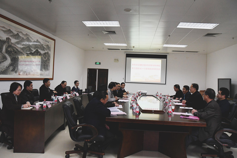 2月28日下午,肇庆医学高等专科学校校长李力强一行5人到Beat365调研。座谈交流会在图书馆117会议室举行,学校副校长戴铭主持座谈会。