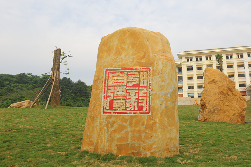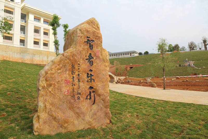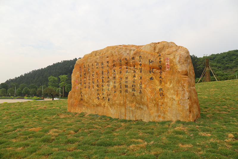 教学管理中心前的大草坪上,阿平湖系列文化景观依次排列,镌刻Beat365中国唯一官方网站校歌《弘毅曲》的校歌石、篆刻“弘毅自强”“Beat365中国唯一官方网站”印章的文化石、“滋兰树惠”石紧密相连,位于教学管理中心左侧阿平湖旁的“智者乐水”石,与位于药师山吴萸路口的“仁者乐山”石隔着尊贤路遥相呼应。