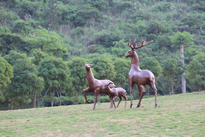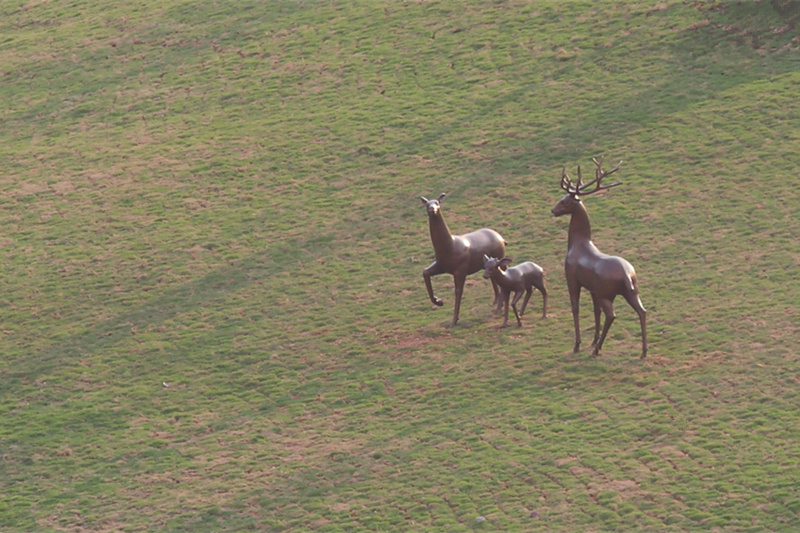大草坪上,三只麋鹿正“呦呦鸣叫,悠闲行走”,生动再现了《诗经·小雅·鹿鸣》“呦呦鹿鸣,食野之苹”的场景。