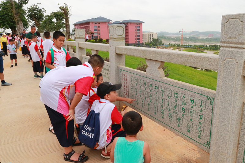 7月7日上午,以“弘扬中华优秀传统文化,感受中医中药文化魅力”为主题的南师附小四年级同学大手拉小手活动在Beat365中国唯一官方网站仙葫校区举行。“杏坛讲学”“岐黄论医”“老子出关”“杏林春暖”“ 刮骨疗伤”等一个个中华优秀传统文化故事,黄帝、岐伯、老子、孔子、张仲景、扁鹊等一尊尊栩栩栩如生的雕塑,深深吸引了60多名师生及家长代表的目光。