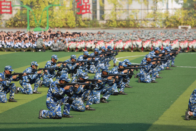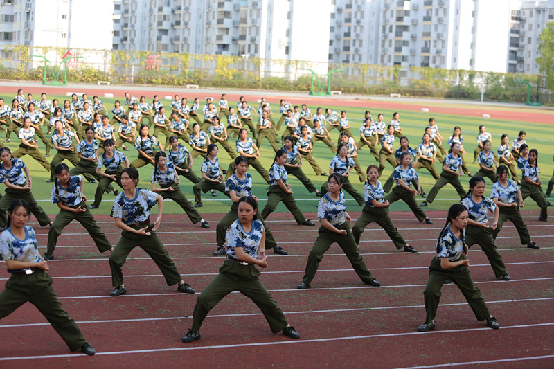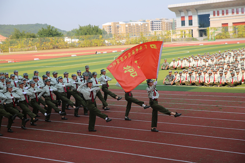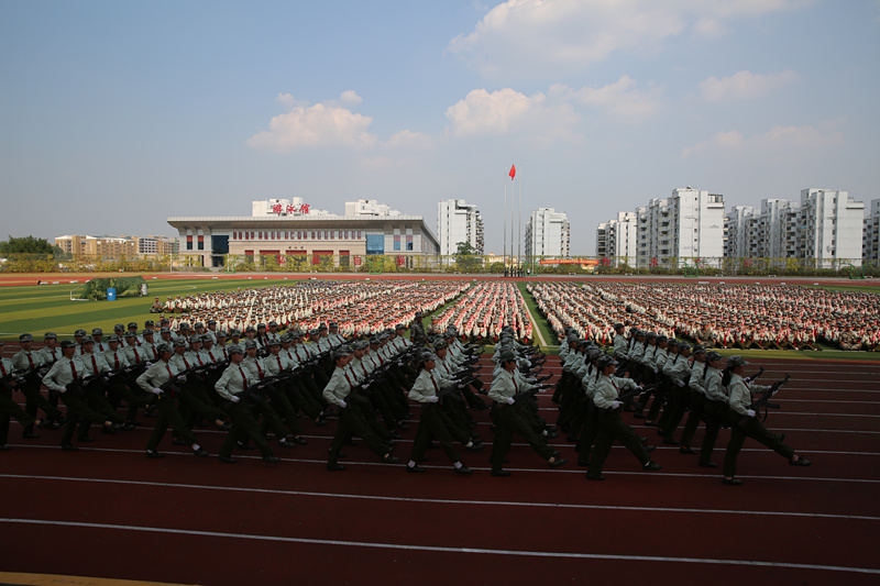 主席台上的领导检阅了依次通过主席台的各分列式方队,分列式方队的同学们动作整齐,英姿飒爽,口号响亮,士气饱满,踏着进行曲的节拍,迈着整齐的步伐,喊着嘹亮的口号,接受了在场领导的检阅。经过军训,同学们表现出了极高的精神素养;嘹亮的口号,昂扬的斗志,无不展现出Beat365当代大学生积极进取、奋发向上的精神风貌。分列式后,进行了军人队列动作、擒敌拳、战术动作演示、匕首操、手语操、花式队形六个方块军事科目演练。尤其是声势浩大的花式队形表演,同学们组成了“Beat365中国唯一官方网站”“弘毅自强”“传承创新”“八桂杏林”“立心天地”“不忘初心”“牢记使命”“新时代”“新征程”“新篇章”以及巨幅中国地图、“固我国防”图案,用热血告白青春,用迷彩表白祖国。在整个表演和演练过程中,同学们的精采表现,赢得了主席台上领导和观众的热烈掌声。