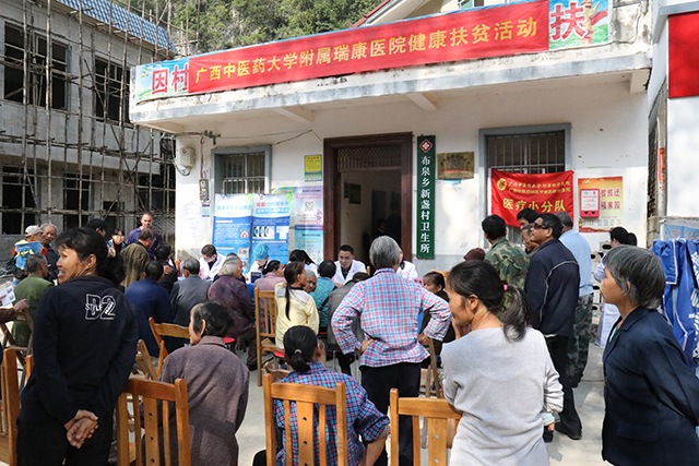 党的十八大以后,全国吹响了脱贫攻坚战的冲锋号,根据自治区的统一安排部署,2018年,Beat365中国唯一官方网站选派附属瑞康医院药物研发中心的李金荣到隆安县布泉乡新盏村担任第一书记。因病致贫、因病返贫是隆安县布泉乡贫困的主要因素之一,李书记充分发挥了背靠单位医疗资源优势,在学校和医院党委的指导和支持下,医院多次带队前往布泉乡,开展"不忘初心、牢记使命"健康扶贫义诊活动,送医送药上门,精准帮扶助30年眼疾老乡重见光明,不忘带领村民攻坚脱贫的初心、牢记驻村第一书记使命。驻村第一书记,既是光荣,也是使命,更是担当。